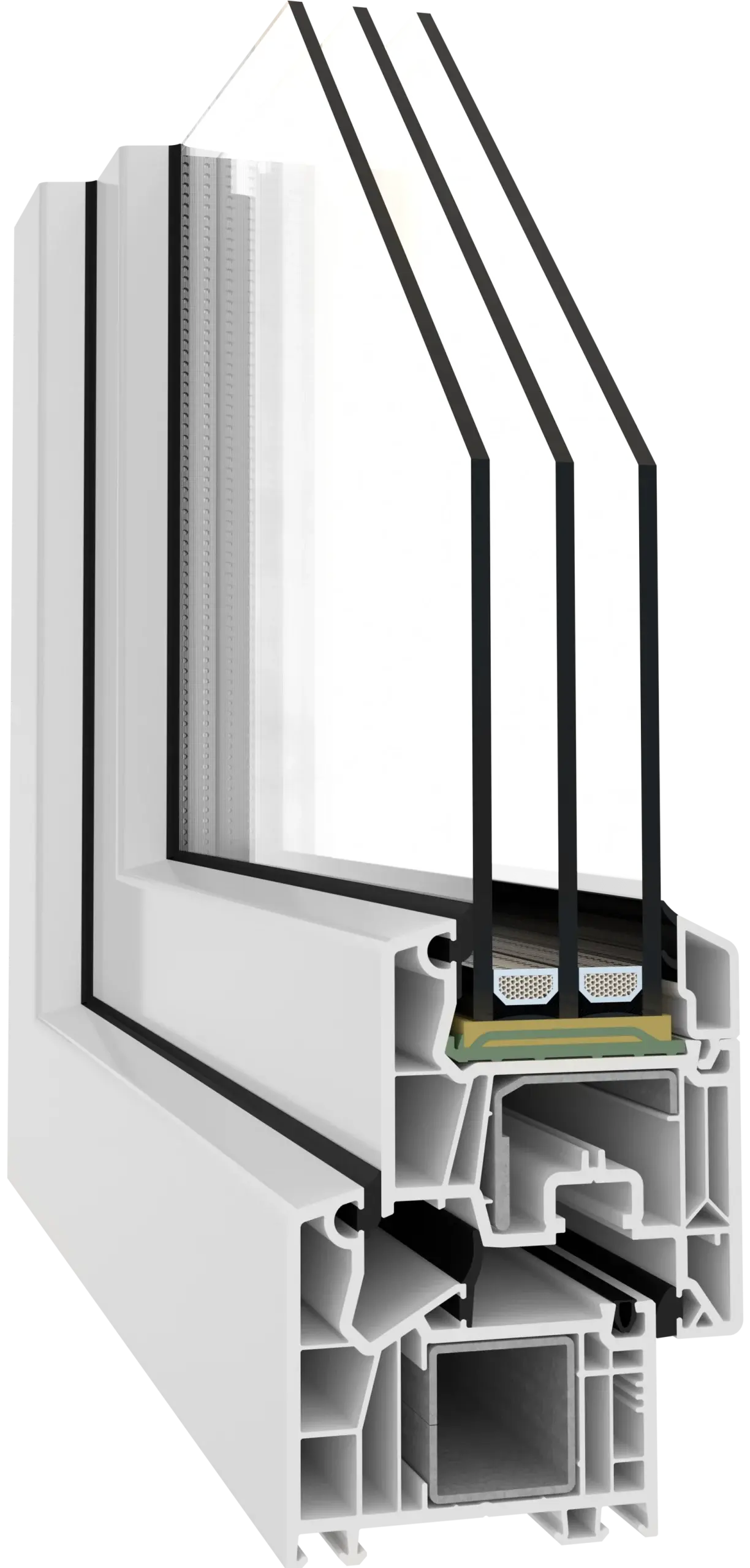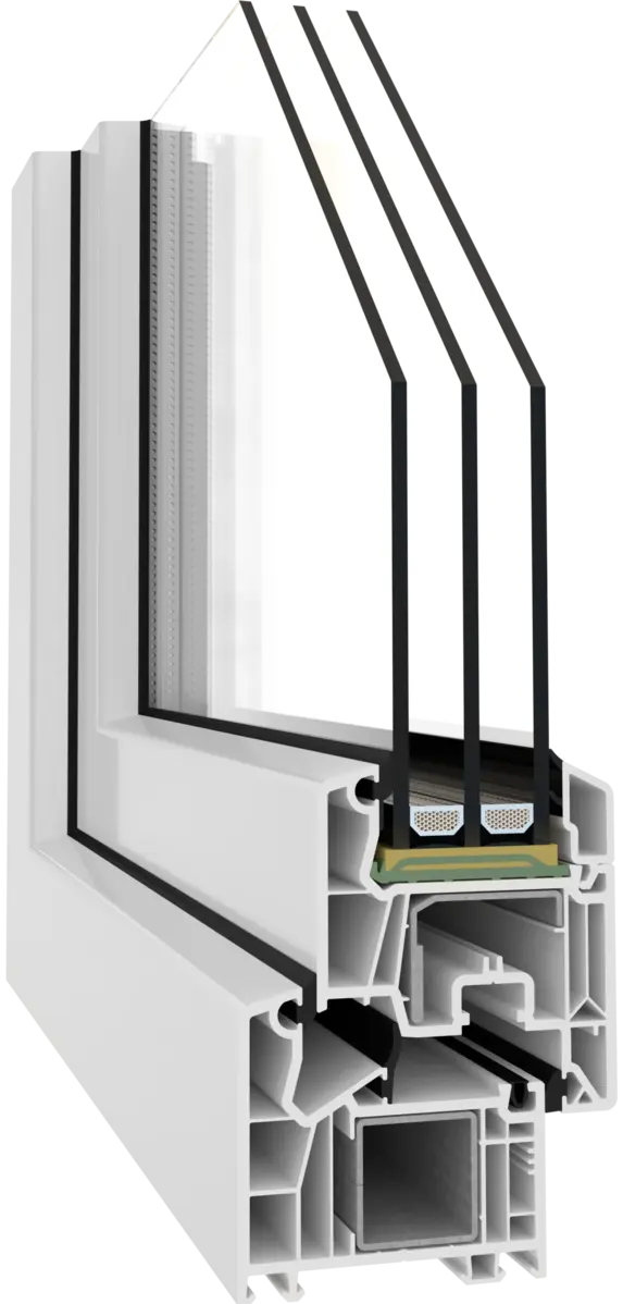 Ferestrele realizate cu profile Veka oferă performanțe termice și fonice excelente datorită construcției cu 5-6 camere de izolare și adâncimi ale profilului între 70 mm și 90 mm. Aceste profile permit utilizarea geamului termoizolant tripan cu grosimi de până la 48-52 mm, contribuind la o izolație termică și fonică superioară. În funcție de configurație, ferestrele Veka pot atinge valori de izolare termică de până la Uw ≈ 0.66 W/m²K, oferind confort optim pe tot parcursul anului. Profilele sunt realizate din PVC de calitate superioară, rezistente la deformare și intemperii, cu o durată de viață estimată de aproximativ 50 de ani. Tehnologia Veka asigură și o întreținere facilă, păstrând aspectul impecabil al ferestrelor pentru mulți ani.